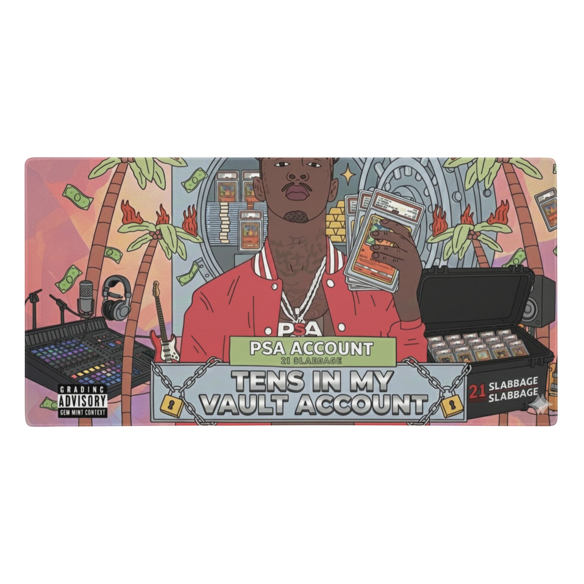 The 21 Slabbage Card Break Mat is built for collectors who measure wealth in PSA 10s, not dollars.